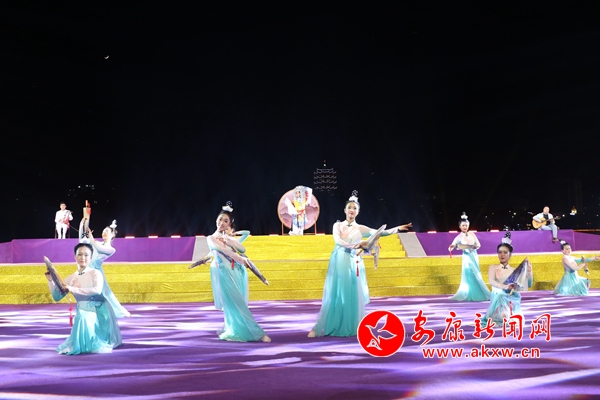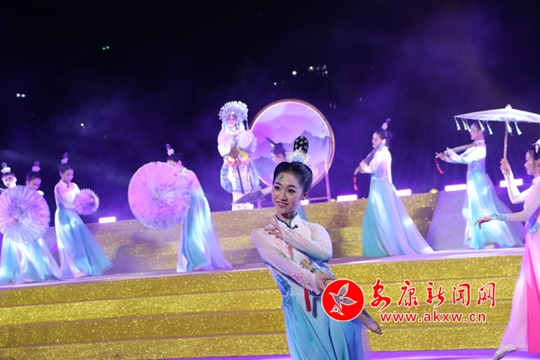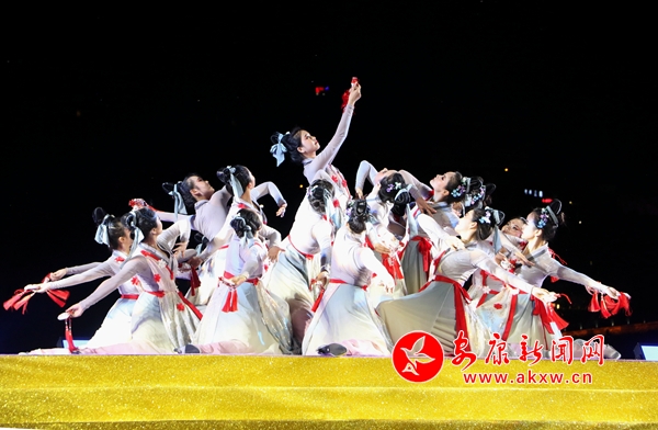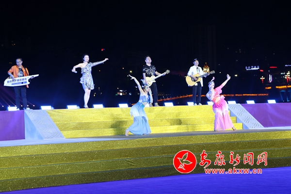 粼粼波光微微風(fēng),樂(lè)舞燈火“靚”漢江。演出以絢麗奪目的燈光秀《多彩漢江》開(kāi)場(chǎng),漢江兩岸五光十色的燈光隨著音樂(lè)的節(jié)律不斷變換、舞動(dòng),使得一江兩岸如夢(mèng)如幻、詩(shī)意盎然,動(dòng)感十足的爵士舞蹈《動(dòng)感安康》展現(xiàn)了安康的青春活力,原汁原味的本地歌舞《山歌不唱不開(kāi)懷》《漢水旗韻》《荷包香安康》《漢江漁歌》《喬木花》《號(hào)子·龍舟》等以獨(dú)特的唱腔、曼妙的舞姿展現(xiàn)傳統(tǒng)漢水文化以及秦巴兒女勤勞淳樸的精神風(fēng)貌,熱情激昂的歌舞《母親安康》演唱出漢水兒女熱愛(ài)山水的樸素愿望和對(duì)美好生活的向往。演出期間,旅游形象大使還對(duì)紫陽(yáng)、漢陰、嵐皋等縣區(qū)的特產(chǎn)、美食、旅游景點(diǎn)、傳統(tǒng)文化等進(jìn)行推介。