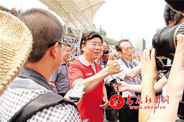 2016年,第十六屆安康龍舟節(jié)開幕式上,央視著名體育解說員韓喬生點贊安康龍舟節(jié)。 陳榮斌 攝