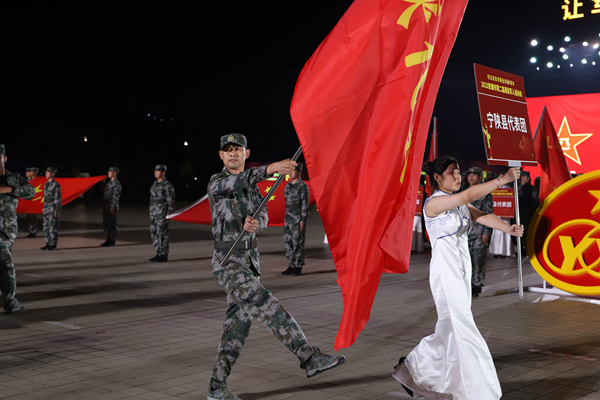 入場(chǎng)儀式完畢,全場(chǎng)起立,面向國(guó)旗,共同高唱國(guó)歌。伴隨著高亢雄壯的國(guó)歌聲,五星紅旗冉冉升起。在國(guó)旗下,全體退役軍人高舉右拳莊嚴(yán)宣誓,表達(dá)了退伍軍人堅(jiān)定不移聽(tīng)黨話(huà)、跟黨走的決心和意志。