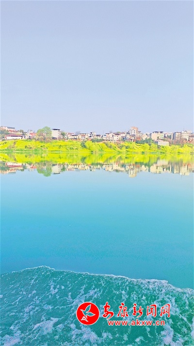 春分之際,漢江游船畫舫從西城坊出發(fā),途徑關(guān)廟、早陽(yáng)等鎮(zhèn),直抵本次航行的終點(diǎn)站——石梯鎮(zhèn)。將近一個(gè)小時(shí)的航程中,兩岸美景盡收眼底,金黃燦爛的油菜花鋪陳在起伏的丘陵原野上,江岸楊柳依依、桃花盛開,民居與自然美景融為一體,倒映在碧綠的江面上,直教人看一眼便覺(jué)心曠神怡。