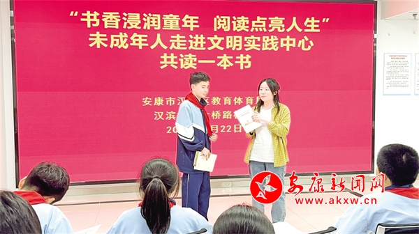 4月22日,漢濱初中大橋路校區(qū)學(xué)生走進(jìn)漢濱區(qū)新時代文明實踐中心,開展“書香浸潤童年,閱讀點亮人生”共讀一本書活動。吳亞君 攝