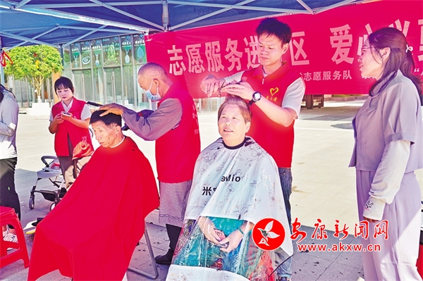 志愿者為社區(qū)老人免費理發(fā)。雷超 攝