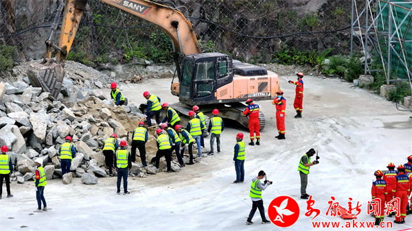啟動(dòng)儀式上,漢陰縣介紹安全宣傳及應(yīng)急演練情況,市安委辦對(duì)全市安全生產(chǎn)月活動(dòng)再安排再部署。隨后,開展了非煤礦山事故應(yīng)急演練。演練模擬持續(xù)強(qiáng)降雨天氣下,漢陰西鐵義德石料有限公司廠區(qū)出現(xiàn)邊坡坍塌導(dǎo)致人員、設(shè)備被掩埋險(xiǎn)情,市、縣、鎮(zhèn)、企業(yè)四級(jí)應(yīng)急救援隊(duì)伍緊急出動(dòng),展開聯(lián)合搶險(xiǎn)救援。演練過程中,各小組緊密配合,順利完成了應(yīng)急響應(yīng)、警戒疏散、交通管制、信息上報(bào)、企業(yè)自救、傷員救治、雷達(dá)生命探測(cè)儀救援、無(wú)人機(jī)運(yùn)輸物資等演練科目,模擬險(xiǎn)情得到及時(shí)消除。本次演練場(chǎng)景逼真,貼近實(shí)戰(zhàn),實(shí)現(xiàn)了鍛煉隊(duì)伍、磨合機(jī)制,強(qiáng)化應(yīng)急處置能力的目標(biāo),無(wú)人機(jī)、生命探測(cè)儀等新技術(shù)裝備的運(yùn)用,有效提升礦山應(yīng)急救援能力。
