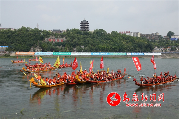 賽龍舟,爭上游,奪彩頭?矗枧_上健身龍齊舞,江面29艘龍舟劈波斬浪,依次通過觀禮臺。龍舟健兒揮槳操舟,漢江橫渡。搶鴨子摸鯉魚,是安康的特色民俗。江水湍急,要搶到“彩頭”,不僅要有良好的水性,還要有團隊協(xié)作精神。船上隊員看準時機,紛紛跳入江里,或游向鴨子,或潛水抓魚。今年特別邀請了,四川貴由赤龍舟隊、湖北長江大學龍舟隊、西安交通大學龍舟隊和商洛市龍舟隊來安康感受龍舟節(jié)的熱情。