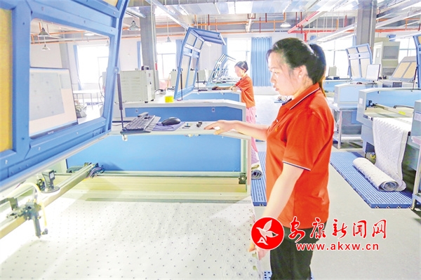 工人們正在操作激光機(jī)對(duì)毛絨玩具外形布料進(jìn)行切割。
