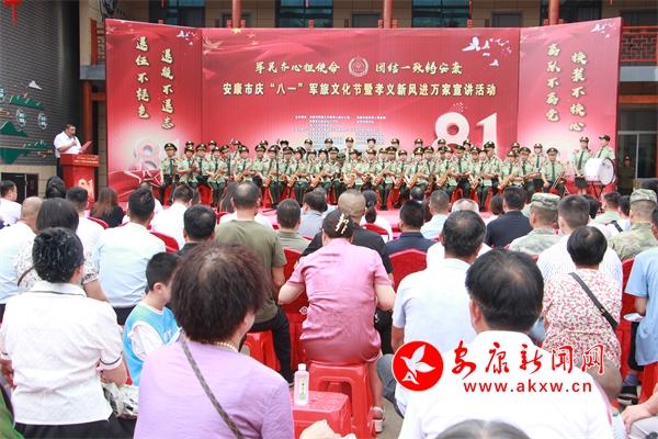 本網(wǎng)訊(記者 黃慧慧 通訊員 王典根)軍愛民,民擁軍,軍民融合情誼深。7月27日,由安康市雙擁工作領(lǐng)導(dǎo)小組辦公室、安康市退役軍人事務(wù)局、安康軍分區(qū)政治工作處、武警安康支隊(duì)、恒口示范區(qū)管委會(huì)共同主辦,以“軍民齊心擔(dān)使命 團(tuán)結(jié)一致鑄安康”為主題的安康市慶“八一”軍旅文化節(jié)暨孝義新風(fēng)進(jìn)萬(wàn)家宣講活動(dòng)在恒口示范區(qū)南月村舉行,軍地領(lǐng)導(dǎo)、部隊(duì)官兵、退役軍人、現(xiàn)役軍人家屬及群眾代表共300余人參加活動(dòng)。