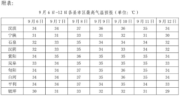 本網(wǎng)訊 9月6日12時,市氣象臺發(fā)布重要天氣報告:根據(jù)最新氣象觀測資料和數(shù)值預(yù)報分析,預(yù)計我市未來一周無區(qū)域性有效降水,仍維持晴熱少雨,8-11日將出現(xiàn)35℃以上高溫天氣,局地最高氣溫可達38℃以上;秦嶺和巴山沿線午后到夜間多分散性強對流性天氣,局地伴有短時強降水(10~30 毫米/小時)和雷暴大風(fēng)天氣。Uge安康新聞網(wǎng)