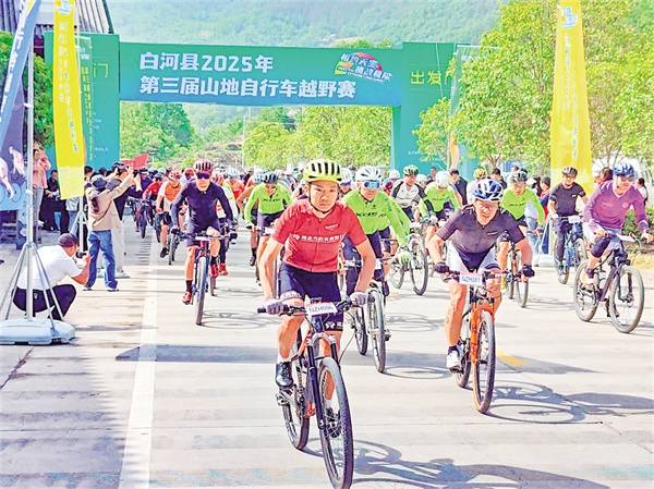 5月1日,白河縣“相約天寶·挑戰(zhàn)極限”第三屆山地自行車越野賽在天寶農(nóng)園景區(qū)舉辦,來自廣東、廣西、四川、湖北等7省市的160余名男女運(yùn)動員和騎行愛好者參與其中。朱明富 攝
