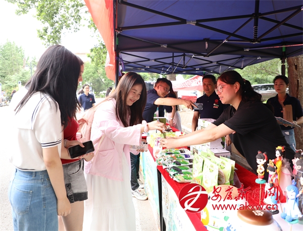 在中國政法大學(xué),現(xiàn)場展銷的炕炕饃、臘肉干、魔芋干、蜂蜜琥珀核桃等即食食品,在學(xué)生食堂現(xiàn)場制作的紅薯粉條炒肉末、安康蒸面、墨魚湯等菜肴以及景區(qū)優(yōu)惠券、文創(chuàng)手作等吸引著眾多師生了解品嘗點贊。