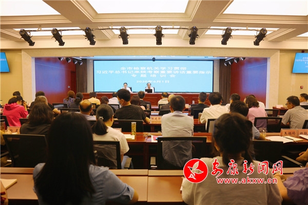 本網(wǎng)訊(通訊員 文倩)為深入學(xué)習(xí)貫徹習(xí)近平總書記來陜考察重要講話重要指示精神,6月1日下午,安康市檢察院組織召開全市檢察機(jī)關(guān)學(xué)習(xí)貫徹習(xí)近平總書記重要講話重要指示專題培訓(xùn)會(huì),邀請省委宣講團(tuán)成員、市委講師團(tuán)副團(tuán)長趙富振進(jìn)行宣講。市院黨組副書記、副檢察長羅善斌主持會(huì)議。