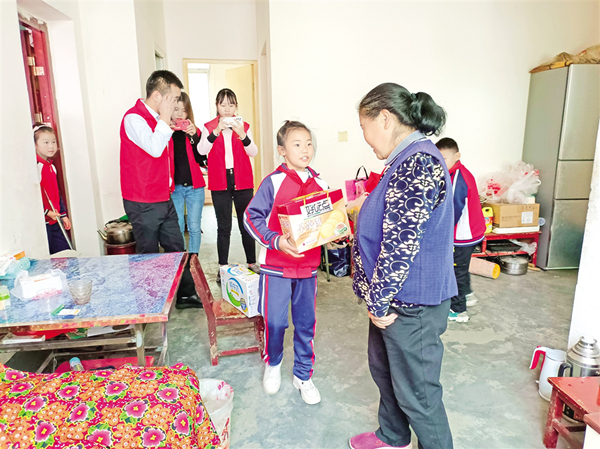 10月10日,石泉云霧山鎮(zhèn)中心小學(xué)組織部分學(xué)生為社區(qū)老人整理房間、打掃衛(wèi)生,還為老人送上節(jié)日的禮物。 譚相華 攝