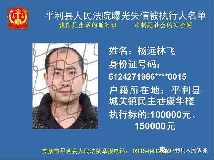 曝光失信 | 平利縣人民法院曝光失信被執(zhí)行人名單(2022年第一、二季度)