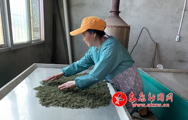 到了晚上便是炒制茶葉的時段,有時候楊明芳可能炒制到午夜三四點鐘,她老公則在早上6點鐘起床,騎車帶著茶葉到城里去售賣。現(xiàn)如今該合作社已吸納了全村60多戶貧困戶,楊明芳自己增收致富,也帶動了在合作社務工的貧困戶脫貧。