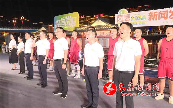 伴隨著一曲歡快的舞蹈《出水芙蓉》,新聞發(fā)布會(huì)正式拉開(kāi)序幕。隨后,特色各異的文藝節(jié)目穿插進(jìn)行,舞蹈《活力寶貝》和歌曲《歡迎你到嵐皋來(lái)》,將現(xiàn)場(chǎng)氛圍引入一陣陣熱潮。第二屆巴山漢水“陜西村BA”體旅促商貿(mào)活動(dòng)組委會(huì)各工作組組長(zhǎng)、當(dāng)?shù)厍蜿?duì)和啦啦隊(duì)熱烈而又真誠(chéng)地發(fā)出賽事宣言:“一座城服務(wù)一個(gè)人,好客嵐皋歡迎您!”。