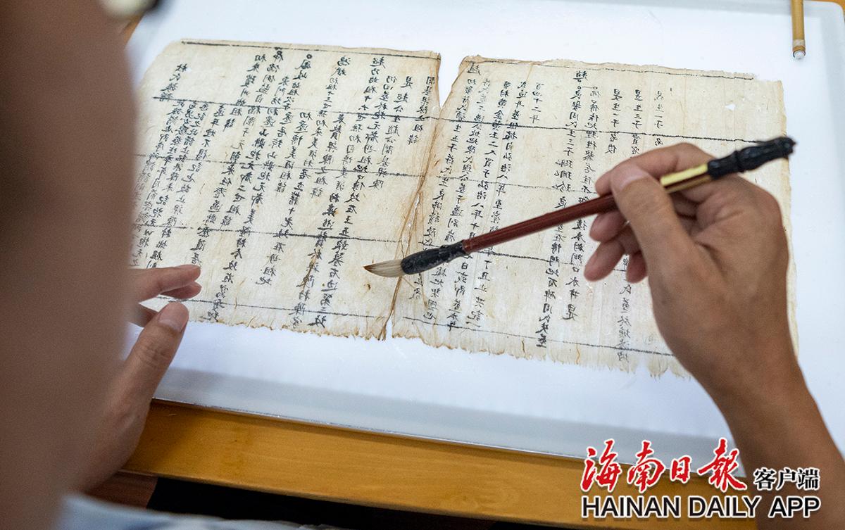 “2008年的時候,國家圖書館古籍保護中心有一項為期3個月的古籍修復培訓計劃,當時海南只有我一人報名參加。”黃文鋒答道,“在北京,我?guī)煆奈覈偶迯蛯<叶艂ド,系統(tǒng)地了解和學習了所有的工序和技術。”