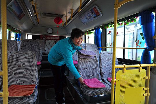 11月4日,司機(jī)正在安裝暖坐墊。中新社發(fā) 于海洋 攝11月4日,乘客坐在安放有暖坐墊的公交車。中新社發(fā) 于海洋 攝當(dāng)日,在沈陽(yáng)230路公交車上,每個(gè)座位上都配備了一……