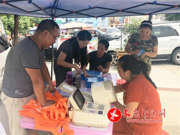 安康新聞網(wǎng)訊(通訊員 屈閔)8月6日,安康市中心血站獻血車來到了漢陰縣蒲溪鎮(zhèn)政府大街前開展夏季獻血活動。雖是早上,但天氣已十分炎熱,讓人只想找個陰涼處躲起來,可沒過多久,獻血車旁的體檢桌邊就坐滿了前來獻血的群眾,大家你一言我一語的詢問著獻血知識,血站工作人員認真地為大家解答,耐心地指導(dǎo)獻血者填好體檢表里的每一項內(nèi)容。