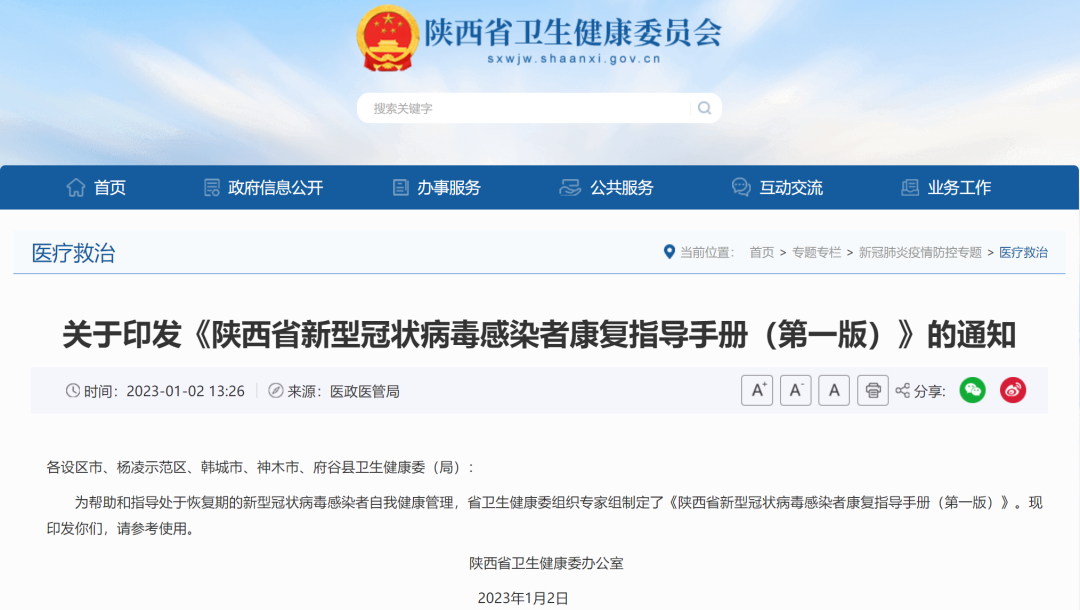 為幫助和指導(dǎo)處于恢復(fù)期的新型冠狀病毒感染者自我健康管理,省衛(wèi)生健康委組織專家組制定了《陜西省新型冠狀病毒感染者康復(fù)指導(dǎo)手冊(cè)(第一版)》。