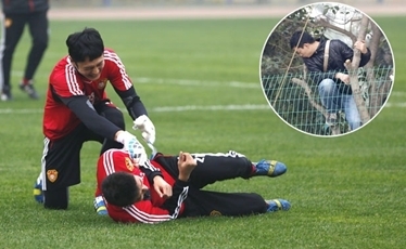 國足西安首訓于海楊智打鬧 球迷上樹圍觀