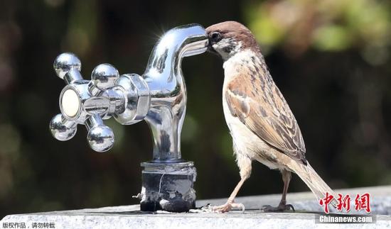 當地時間2015年5月26日,韓國氣象局發(fā)布了本年度首個熱浪警報,稱在未來幾日,氣溫或升至33攝氏度。首爾街頭一只小鳥試圖把頭探進水龍頭里喝水。中新網6月25日電……