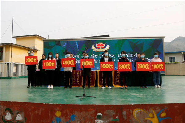 4月13日上午,白河縣“全民反詐”宣傳暨涉案財(cái)物集中返還大會(huì)在縣體育場(chǎng)舉行?h委常委、政法委書(shū)記余盛武,縣政府副縣長(zhǎng)、公安局黨委書(shū)記、局長(zhǎng)譚簡(jiǎn)出席活動(dòng)?h委政法委、縣法院、縣檢察院、縣司法局、城關(guān)鎮(zhèn)政府有關(guān)領(lǐng)導(dǎo),城關(guān)鎮(zhèn)清風(fēng)社區(qū)、橋兒溝社區(qū)、獅子山社區(qū)、河街社區(qū)的工作人員及群眾代表,公安干警等200余人參加了活動(dòng),白河縣公安局近期破案并追回的60余萬(wàn)元涉案現(xiàn)金現(xiàn)場(chǎng)返還給受害群眾。