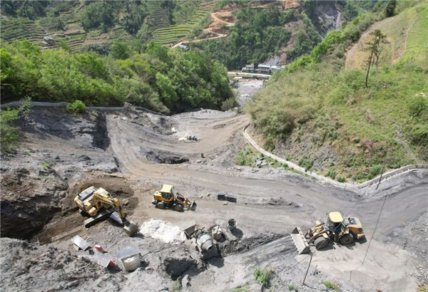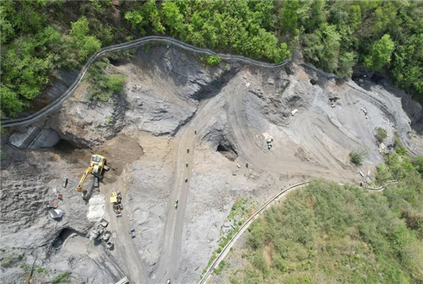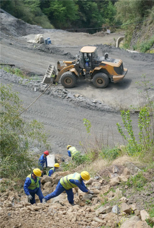 ↑4月9日,在白河縣卡子鎮(zhèn)鳳凰村一處廢棄硫鐵礦污染治理施工現(xiàn)場(chǎng),工人在清理排洪渠。Sv2安康新聞網(wǎng)