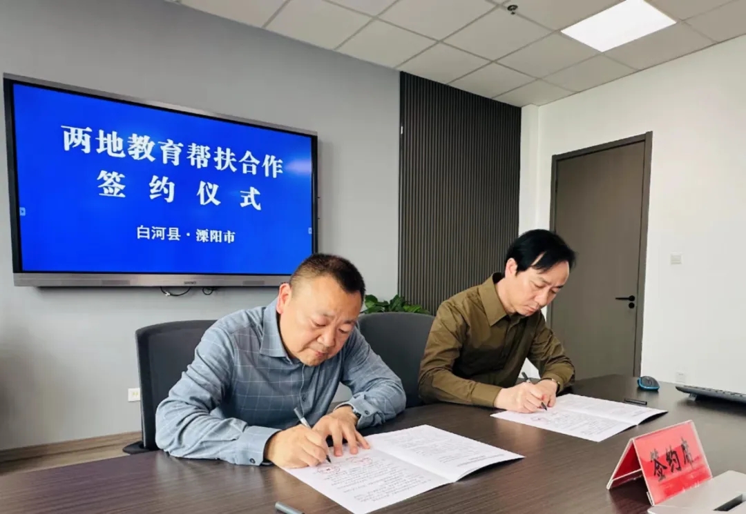 為加強(qiáng)兩地教育領(lǐng)域的深度合作,溧陽(yáng)市教育局、白河縣教育體育和科技局還共簽了新一輪框架協(xié)議。兩地本著優(yōu)勢(shì)互補(bǔ)、資源共享、合作共贏的原則,經(jīng)過(guò)友好協(xié)商,達(dá)成了幫扶對(duì)口學(xué)校更新辦學(xué)理念、提升管理水平、打造特色課程、優(yōu)化教師隊(duì)伍、改善設(shè)施條件、提升學(xué)生幸福指數(shù)等多項(xiàng)內(nèi)容的協(xié)議。