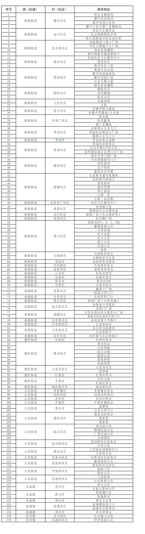 附件:漢濱區(qū)中心城區(qū)全員核酸檢測采樣點(diǎn)一覽表