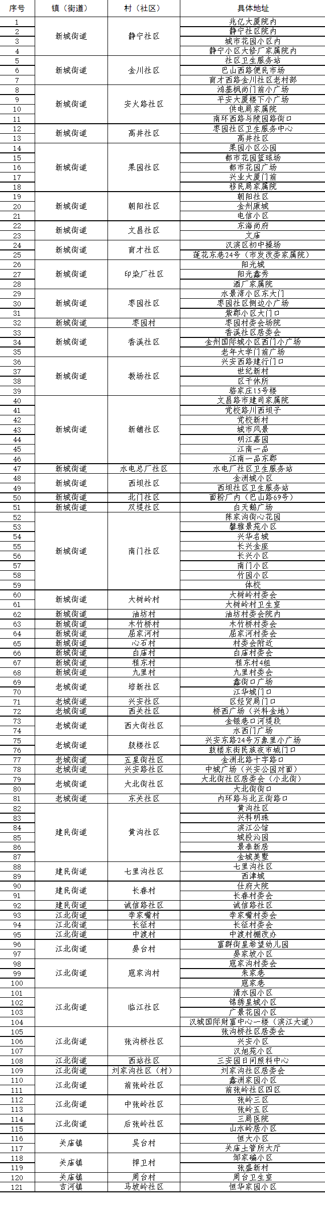 附件:漢濱區(qū)中心城區(qū)全員核酸檢測采樣點(diǎn)一覽表