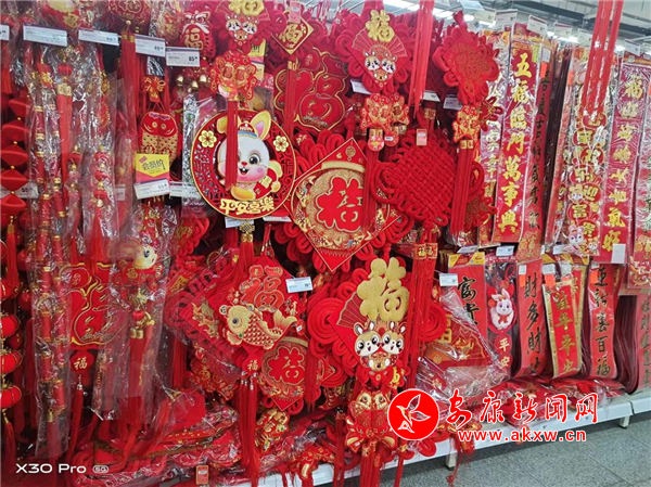 年貨市場(chǎng)一片火熱,瓜果、蔬菜、肉類、年畫應(yīng)有盡有,處處洋溢著節(jié)日的喜慶,呈現(xiàn)出購(gòu)銷兩旺的紅火景象。超市、店鋪年貨琳瑯滿目,商家用各種的優(yōu)惠招攬顧客。