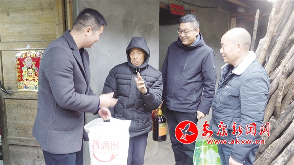 “過(guò)年好。恭喜發(fā)財(cái)!”“萬(wàn)物呈祥榮盛世 九龍獻(xiàn)瑞慶良辰。這副對(duì)聯(lián)美得很。”“氣溫低,取暖注意安全。”漢濱區(qū)人社局派駐瀛湖鎮(zhèn)陽(yáng)坡村第一書記李大林和村黨支部書記晏真云一路邊和鄉(xiāng)親們打著招呼、送去祝福,邊叮囑著冬季取暖安全和森林防火等相關(guān)注意事項(xiàng),兩人徑直走到了村民晏世全家中。