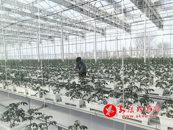 據(jù)介紹,綁蔓作業(yè)是為了給圣女果苗一個(gè)向上生長(zhǎng)的支撐,圣女果苗高度會(huì)長(zhǎng)到五至七米,每摘一至兩層果,就要落蔓。這樣的種植方式有效地增加了空間面積。