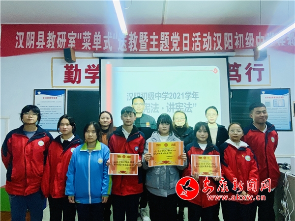11月11日,漢陰縣漢陽初級中學開展“學憲法,講憲法”為主題的憲法知識競賽活動。此次知識競賽試題圍繞憲法知識,涉及青少年違法犯罪、道路交通安全法規(guī)知識、校園暴力事件等知識內(nèi)容。通過開展此次活動,進一步加深學生對憲法的認識,切實增強學生“學法、知法、守法、護法”的意識,營造良好的法治教育氛圍。(通訊員 許明 趙靖雯) CXH安康新聞網(wǎng)