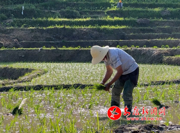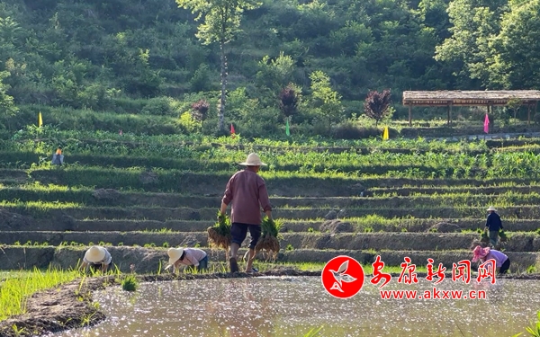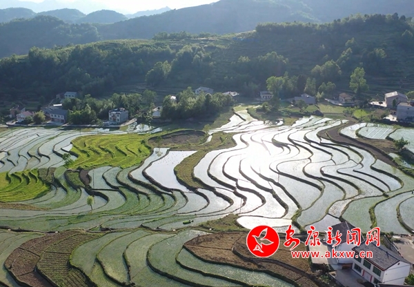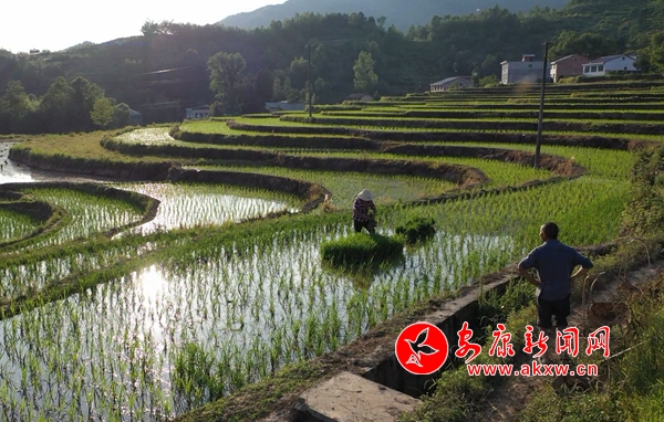 放眼望去,層層梯田披上了一襲綠色的新裝,微風吹過,秧苗輕輕搖擺,蕩漾起無限生機。在持續(xù)兩周的插秧期,村民們每天從早上六點一直忙到下午七點鐘才收工,“手把青秧插滿田”的農(nóng)忙景象與大大小小形狀各異的水田,構成一幅詩意盎然的田園風光圖。