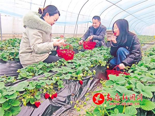 “這幾個大棚都是種的草莓,每天都有訂單送往縣城水果店,春節(jié)以來,有很多游客前來采摘,銷路基本不愁…… ”蔬果種植戶倪小寶看著滿園的“金”果果開心地介紹道。