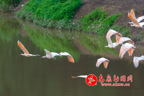 2010年,漢陰縣首次在澗池鎮(zhèn)洞河河畔發(fā)現(xiàn)朱鹮,2013年,朱鹮在漢陰縣雙河口鎮(zhèn)鳳柳村清泥河畔首次繁衍成功。隨著近年來漢陰縣生態(tài)環(huán)境的持續(xù)改善,先后在觀音河鎮(zhèn)、澗池鎮(zhèn)、蒲溪鎮(zhèn)、鐵佛寺鎮(zhèn)、城關(guān)鎮(zhèn)、雙乳鎮(zhèn)等多地發(fā)現(xiàn)朱鹮的倩影,截至目前,已在漢陰共發(fā)現(xiàn)朱鹮110余只。