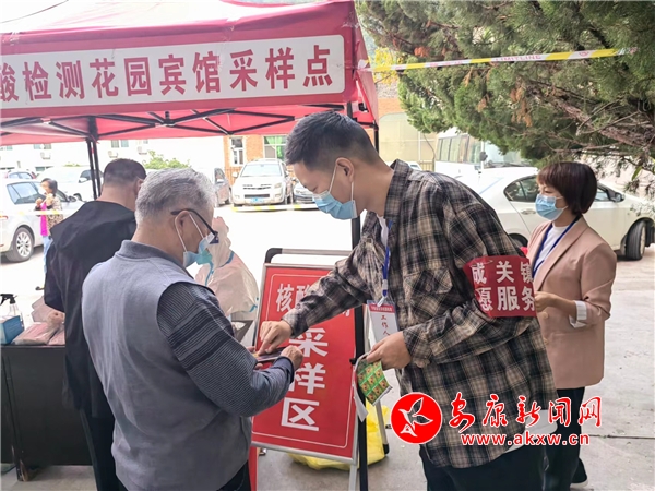 為確保中心城區(qū)群眾應(yīng)檢盡檢,城關(guān)鎮(zhèn)新時代文明實踐活動以協(xié)助全員核酸檢測為主要內(nèi)容蓬勃開展。城南社區(qū)新時代文明實踐站志愿者、醫(yī)護人員組成“上門服務(wù)”采樣隊為武警中隊執(zhí)勤戰(zhàn)士、高齡老人開展上門采樣服務(wù),志愿服務(wù)“一抹紅”成為此次新一輪中心城區(qū)全員核酸檢測工作一道亮麗的風景線。