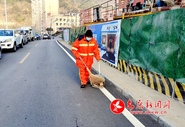 本網(wǎng)訊(通訊員 王輝)1月21日(除夕)早上8時(shí)許,空氣中依舊彌漫著寒冷的氣息。筆者在陜西省寧陜縣城區(qū)川流的行人和車輛旁看到,環(huán)衛(wèi)夫妻檔方明貴和李金蘭正一前一后沿途清掃路邊散落的紙屑。