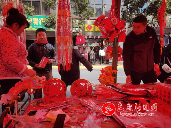 攤主劉女士說(shuō):“雖然今年過(guò)年時(shí)間比較晚,但是我們的年貨已經(jīng)早早備齊了,最近大家買對(duì)聯(lián)的熱情高漲,在新的一年祝愿大家龍年行大運(yùn)、發(fā)大財(cái),龍年吉祥。”