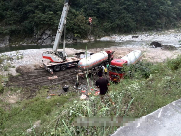 8月27日,一輛液化氣重型罐車由西安駛往安康,途徑210國(guó)道寧陜縣江口鎮(zhèn)內(nèi)時(shí),由于雨天路滑在一急轉(zhuǎn)彎處發(fā)生意外,車翻滾入路外的河灘里,車輛受損乘員嚴(yán)重受傷,……