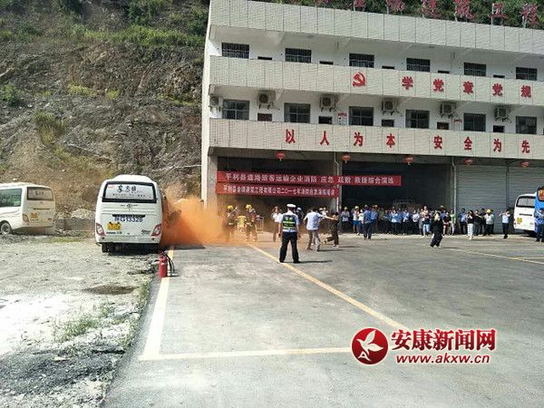 安康新聞網(wǎng)訊(通訊員 蘇婷 葛兵)2017年6月23日上午,平利交警城區(qū)中隊(duì)聯(lián)合安監(jiān)、運(yùn)管、消防及客運(yùn)企業(yè)等相關(guān)職能部門在縣客運(yùn)站開(kāi)展道路旅客運(yùn)輸企業(yè)安全消防應(yīng)急演練。