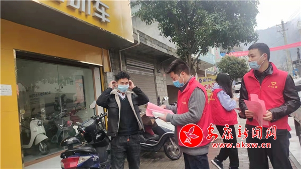 3月25日,平利縣八仙中學志愿者小分隊應邀走進八仙鎮(zhèn)街道,開展疫情防控宣傳志愿服務,他們走進門店超市、小區(qū)、市場,廣泛宣傳勤洗手、常通風、戴口罩、測體溫、打噴嚏捂口鼻、少出門、不聚集,做好疫苗接種等疫情防控常識,挨個勸說,挨個引導,充分發(fā)揚了先鋒模范作用。 (圖文/李傳祥)Sf4安康新聞網(wǎng)