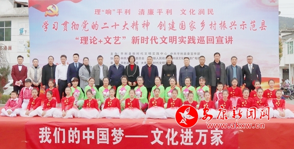 理論+文藝“飛入尋常百姓家”。陽春三月,“學習宣傳貫徹黨的二十大精神 奮力創(chuàng)建國家鄉(xiāng)村振興示范縣”理論+文藝新時代文明實踐巡回宣講啟動儀式在大貴鎮(zhèn)后灣村成功舉行,活動現(xiàn)場,《美麗中國》歡快舞動,《茶香春早》悅耳動聽,《鄉(xiāng)村處處話振興》娓娓道來,《沁園春·雪》雄邁豪放,理論宣講貫穿其中,一場視聽盛宴下來,群眾對發(fā)展的信心、對理論、政策的學習熱情更加高漲。將黨的二十大精神精準地轉(zhuǎn)化為接地氣的文藝節(jié)目,讓群眾聽得清、聽得懂、聽得進、用得上,收獲滿滿。