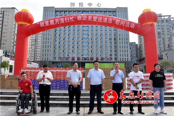 活動儀式上,縣創(chuàng)建辦會同石泉縣茗泉商貿(mào)有限公司等3家愛心企業(yè),向高溫天氣里依然堅守工作崗位的環(huán)衛(wèi)職工致以衷心的感謝和崇高的敬意,分別贈送茶葉、飲料、礦泉水、毛巾等防暑降溫物品,共計價值人民幣22000元,惠及165名環(huán)衛(wèi)職工,充分體現(xiàn)了黨和政府及社會各界對環(huán)衛(wèi)職工的關(guān)心關(guān)愛。