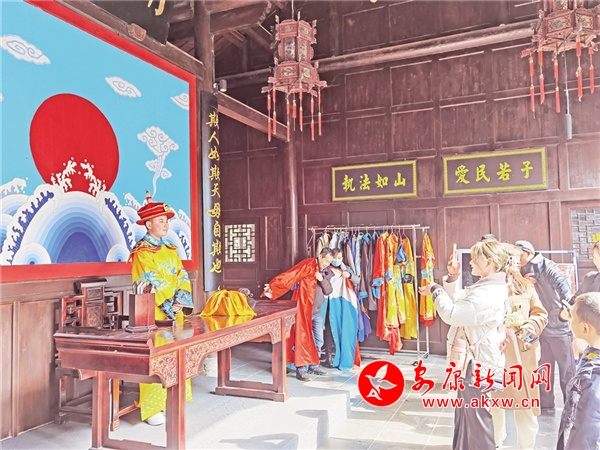 每到周末或節(jié)假日,石泉縣秦巴老街的古縣衙人頭攢動(dòng),走近一看,原來(lái)大家是在觀看情景劇“縣令審案”。“在古街上演情景劇,這種形式非常好,生動(dòng)有趣,感覺自己穿越到了古代,特別有氛圍感。”安康市民王樂(lè)趁著周末,約上朋友一起到石泉老街游玩。