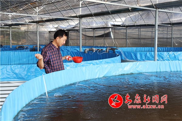 在近三畝的陽光溫室大棚里,8個大型淺藍色養(yǎng)魚池整齊排成兩列,密密麻麻喂養(yǎng)著淡水鯽魚,而另一側則是分若干個培養(yǎng)槽,蔬菜則種植于水槽上,通過泡沫等漂浮材料將其托起,實現了無土栽培,中間由專用的凈化循環(huán)裝置實現養(yǎng)魚、種菜水循環(huán)。這種新型的魚菜共生復合耕作體系,把水產養(yǎng)殖與水耕栽培這兩種原本完全不同的農耕技術,通過巧妙的生態(tài)設計,實現了養(yǎng)魚不換水、種菜不施肥的生態(tài)共生循環(huán)。