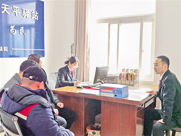 近年來,旬陽法院立足山區(qū)基層法院實際,在抓好人民法庭工作的基礎上,在法庭下轄鎮(zhèn)的村、社區(qū)設立“天平驛站”,安排法官定期輪值,及時響應群眾訴求,實現(xiàn)矛盾糾紛一站式接收、一攬子調處、全鏈條閉環(huán)解決, 推動審判觸角向百姓“家門口”延伸。
