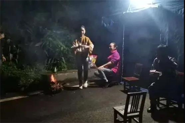 最危險的時刻過去了,牛頭堡的公路卻坍塌了一處,王浩和同事在附近搭起帳篷,輪班值守。大山深處的雨夜格外寒冷,濕氣直往骨頭里鉆,王浩坐在小馬扎上,遠遠看見黑暗的路上有一團移動的火光越來越亮,原來是村民大姐帶著女兒送來了火盆和熱茶水。
