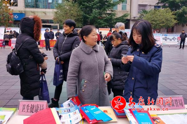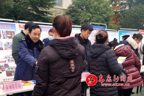 啟動(dòng)儀式結(jié)束后,32個(gè)相關(guān)部門圍繞“弘揚(yáng)憲法精神,建設(shè)法治鎮(zhèn)坪”的宣傳主題,按照統(tǒng)一安排,在鎮(zhèn)坪縣中心廣場集中開展宣傳活動(dòng)。在做好憲法宣傳的同時(shí),鎮(zhèn)坪縣市場監(jiān)管局結(jié)合自身職能職責(zé),通過設(shè)立宣傳咨詢臺、懸掛標(biāo)語、擺放展板、發(fā)放宣傳資料等方式,開展了市場監(jiān)管系統(tǒng)法律法規(guī)的宣傳和咨詢活動(dòng),大力宣傳《食品安全法》《藥品管理法》《消費(fèi)者權(quán)益保護(hù)法》《特種設(shè)備安全法》等法律法規(guī)知識,積極向廣大群眾發(fā)放宣傳資料,熱情耐心地向咨詢?nèi)罕娦v食品藥品安全、偽劣產(chǎn)品鑒別等法律法規(guī)知識,并告知群眾一些消費(fèi)注意事項(xiàng),提高群眾的識假辨假能力和依法維權(quán)意識。