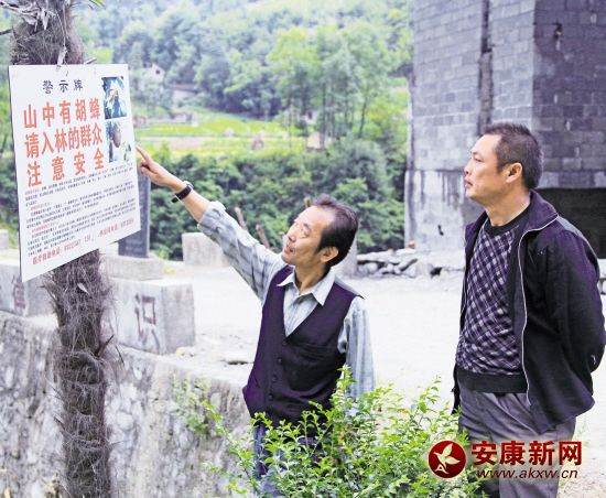鎮(zhèn)坪各路口設(shè)置胡蜂警示標志